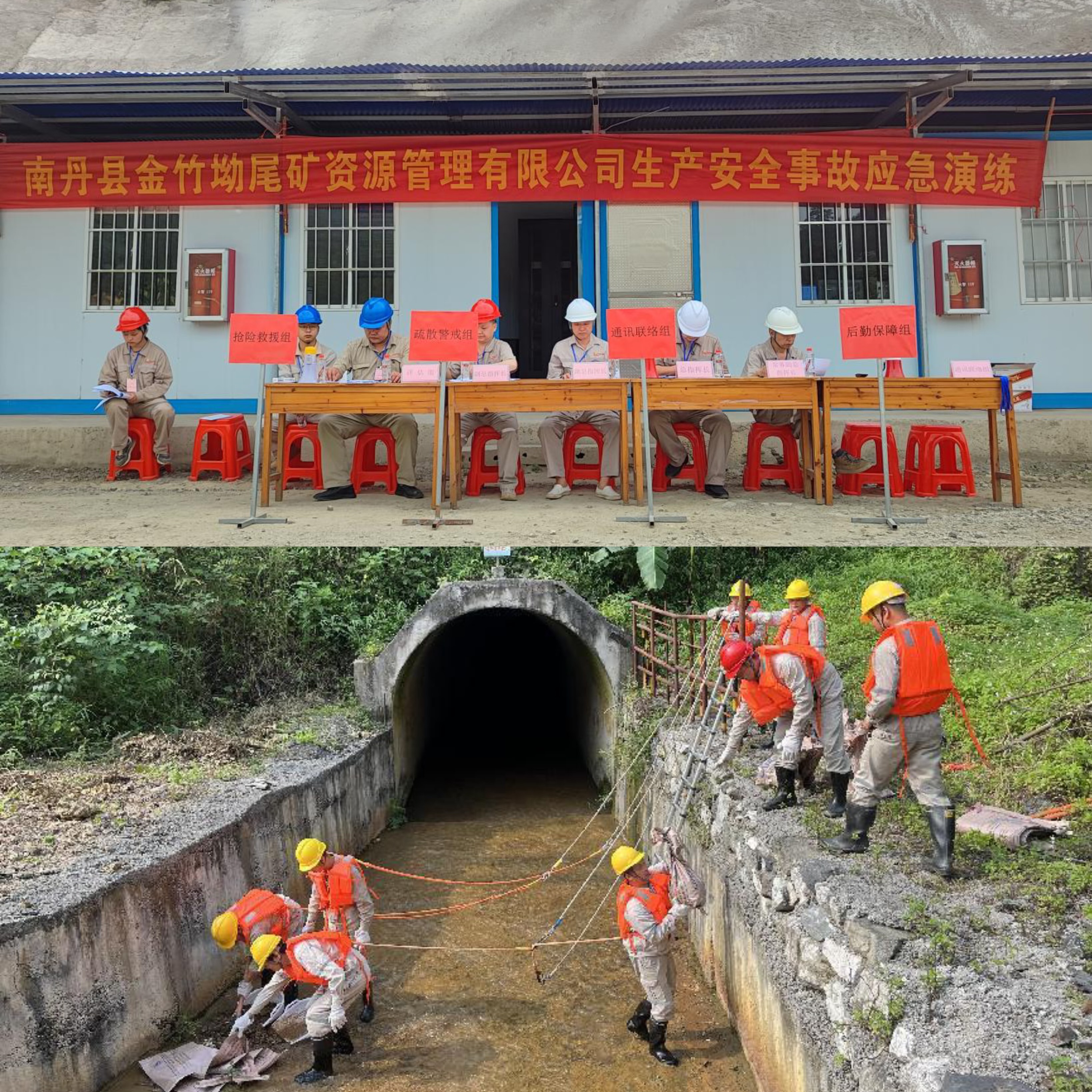 2024年4月30日上午9時(shí),拉么鋅礦組織開展尾礦干堆場(chǎng)排水隧洞淤堵險(xiǎn)情專項(xiàng)應(yīng)急救援演練。拉么鋅礦礦長(zhǎng)、黨委書記任云擔(dān)任總指揮,副礦長(zhǎng)、尾礦資源公司總經(jīng)理覃運(yùn)國(guó)擔(dān)任常務(wù)副總指揮,尾礦資源公司副總經(jīng)理?xiàng)钤俸辍⒚稍茡?dān)任副總指揮。演練分為搶險(xiǎn)救援組、疏散警戒組、通訊聯(lián)絡(luò)組、后勤保障組四個(gè)小組,此次演練共有30余人參加。