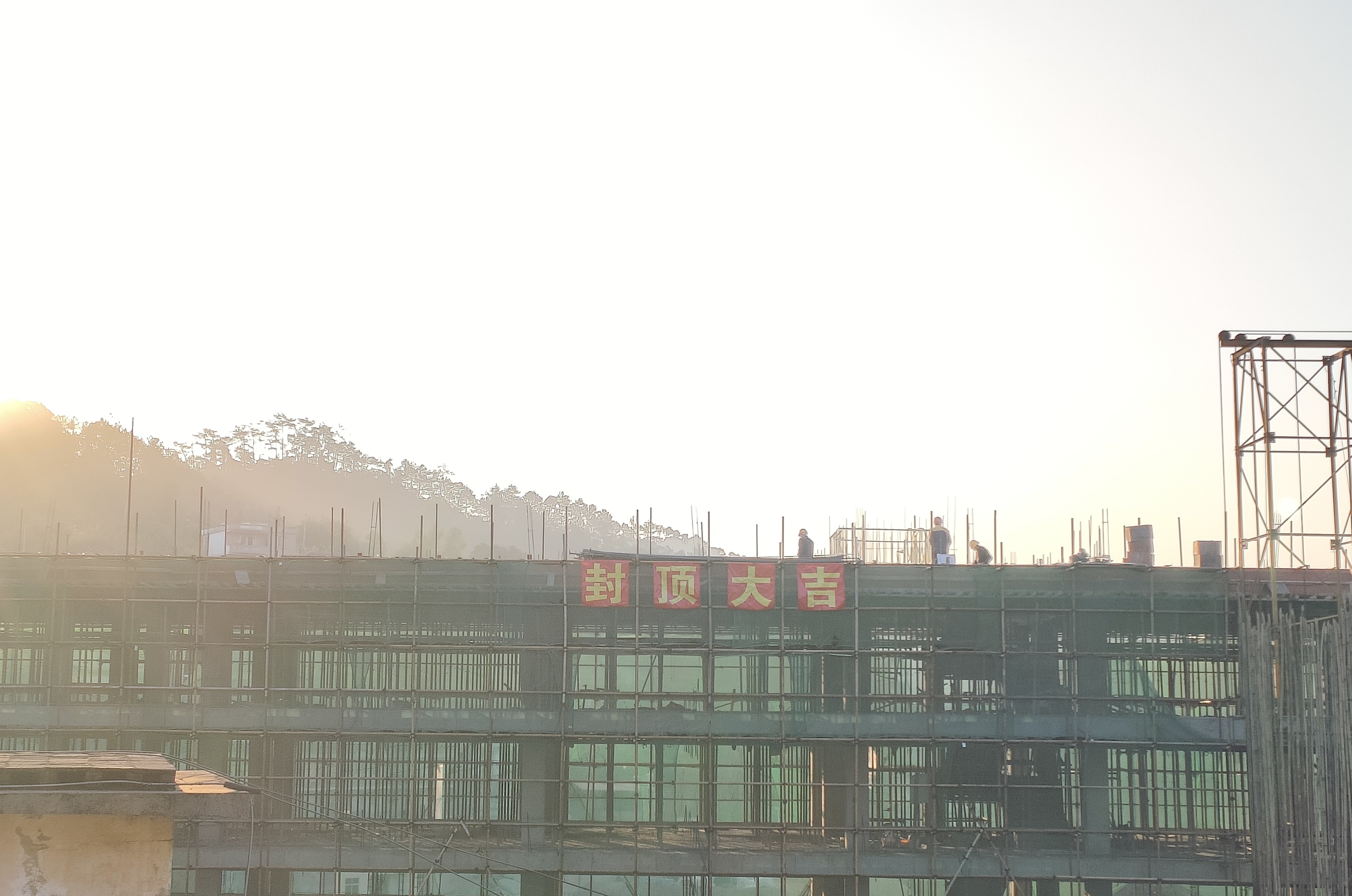2024年12月19日8時58分,龍灣公司為大院擴建綜合樓工程舉行了低調簡樸的封頂大吉儀式。龍灣公司總經理韋優揚、副總經理廖建平及承建方代表等10多人出席封頂儀式。