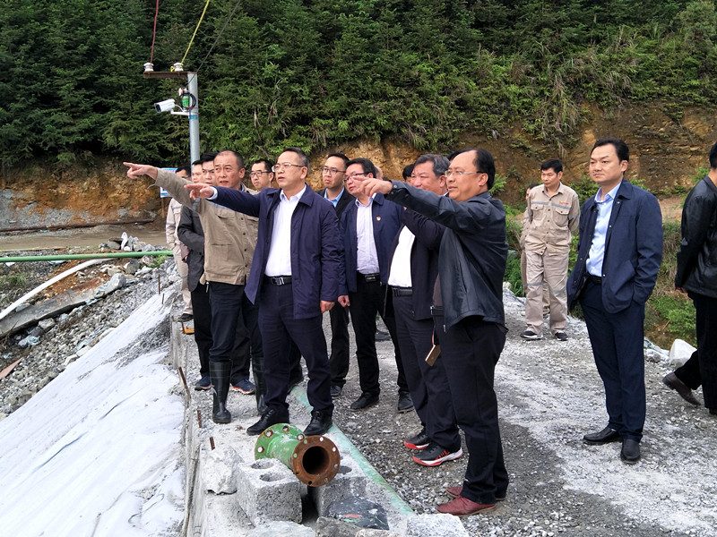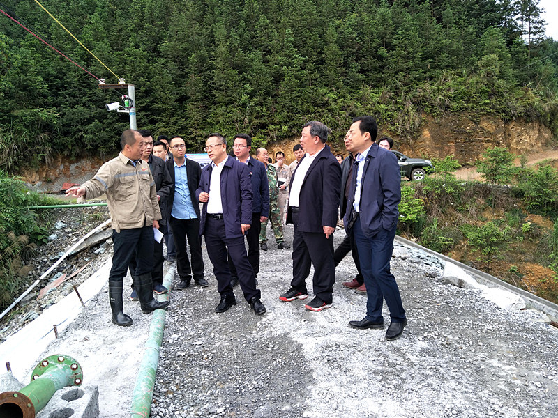 2019年5月8日下午,南丹縣縣委書記韋永山帶領縣委辦、政府辦、應急管理局、生態環境局、自然資源局等職能部門負責人到拉么鋅礦調研尾礦干堆場項目工程建設情況。縣人大常委會主任覃建軍、政協主席梁翰文、縣委副書記唐焰、常務副縣長龍照國、副縣長林國強等領導參加調研。金河公司總經理伍玉中、拉么鋅礦礦長覃忠清、黨委書記藍標東、總工程師羅懷長等領導陪同。