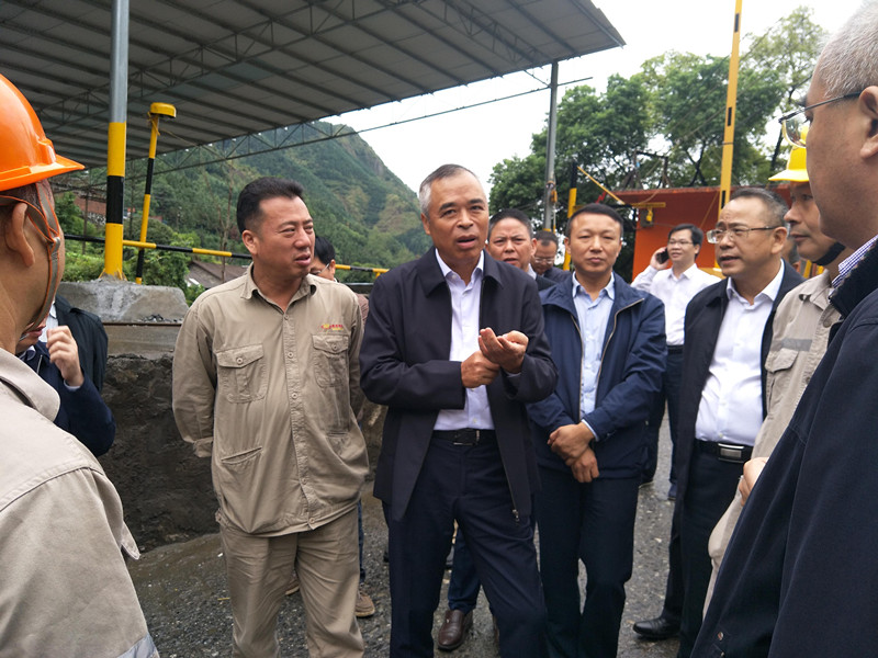 2019年10月17日上午,廣西壯族自治區自然資源廳黨組書記、廳長陳建軍率隊蒞臨拉么鋅礦就綠色礦山建設及礦產資源綜合利用情況進行調研。河池市市長唐云舒、南丹縣縣委書記韋永山、南丹縣縣長覃康平等領導及相關職能部門負責人隨行調研,金河公司董事長周南方、總經理伍玉中及拉么鋅礦主要負責人陪同調研。