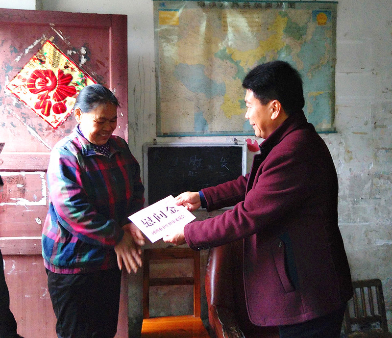 2020年1月14日,春節(jié)將至,河池市衛(wèi)健委黨組書記韋東祿來到拉么鋅礦對簡奇精等5戶困難殘疾職工進行走訪慰問,了解他們的家庭生活和身體康復情況,并送上黨和政府的溫暖及新春的祝福。