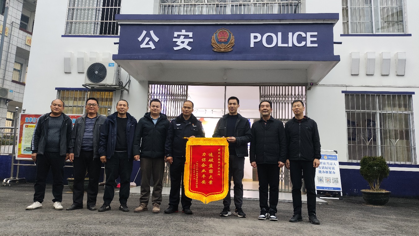 2023年12月13日,北山公司領導班子將印有“速破盜竊大案 力保企業平安”字樣的錦旗送到馴樂苗族鄉派出所,感謝馴樂苗族鄉派出所在短時間內迅速偵破北山公司財產被盜案,及時為企業挽回經濟損失,積極營造良好的營商環境。